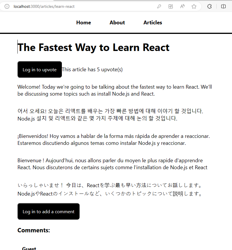 로그인을 하지 않았으므로 Log in to upvote 버튼과 Log in to add a comment 버튼이 생겼습니다.