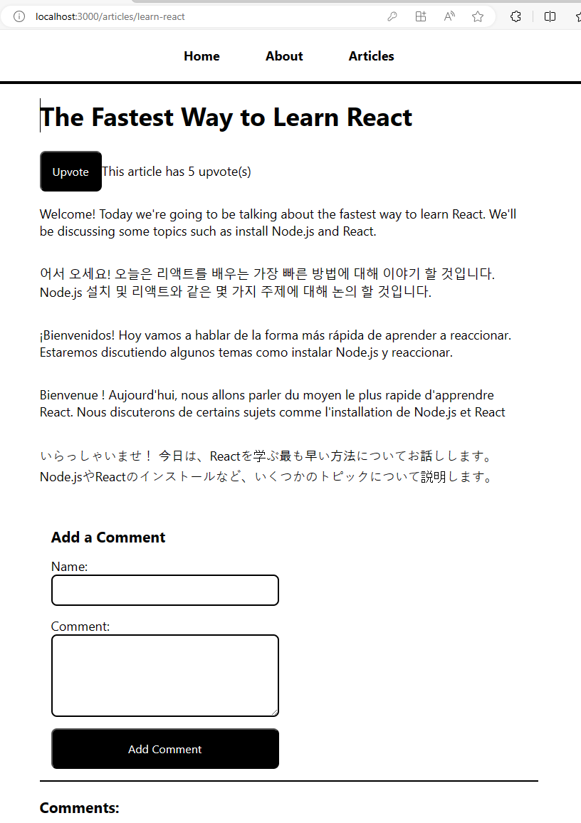 문제 없이 좋아요을 클릭할수 있는 Upvote 버튼과 댓글을 달수 있는 Add comment 부분이 생겼습니다.