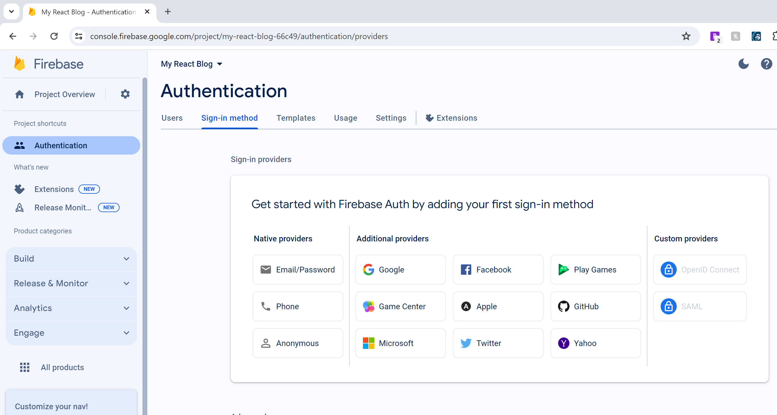 그럼 지금부터 Firebase Auth에서 프로젝트를 생성하여 사용자 관리를 해보고 나중에 블로그에 연결하도록 하겠습니다.