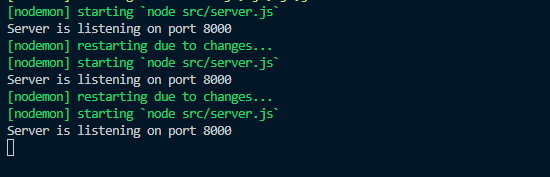 이제 이 명령어를 통해서 서버가 지속적으로 실행 되고 소스가 업데이트될때마다 자동으로 서버를 새로 고치고 다시 시작합니다.