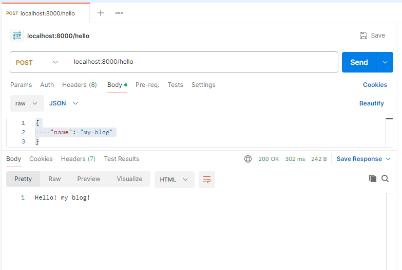Postman으로 테스트한 결과 화면은 다음과 같습니다.