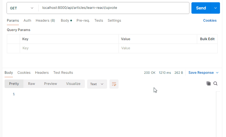Upvoting 즉 좋아요를 구현하기 위해서 PUT request를 사용합니다. 코드는 아래와 같습니다.