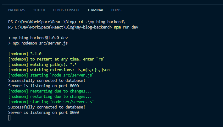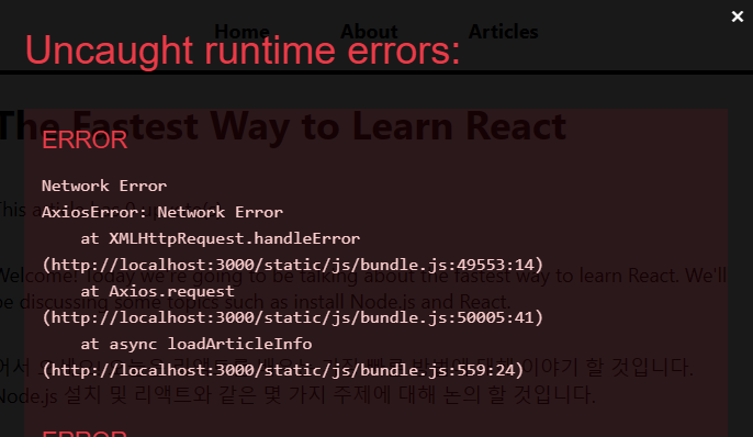 에러가 사라진것을 확인합니다. 이제 서버와 클라이언트 즉 Front End 와 Back End가 연결이 되기 시작했습니다.