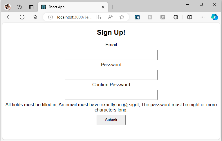 Validate a user sign-up form once the user submits that form.